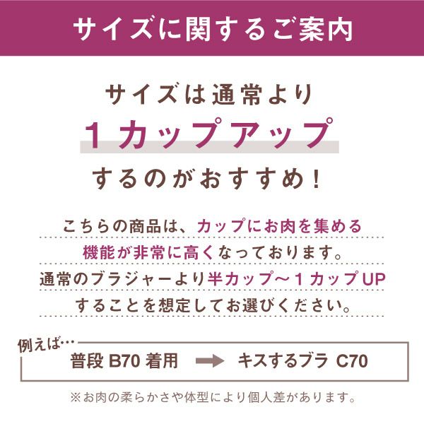 ※お肉が集まりやすい方、普段パッドなしでお使いの方はワンカップアップすることをオススメします。