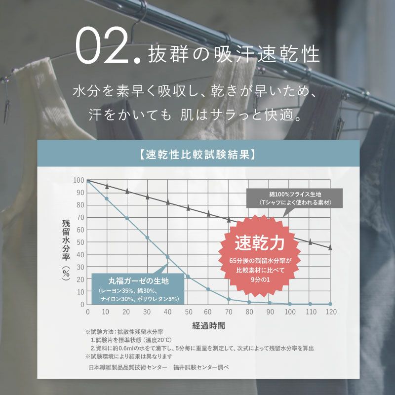 吸水速乾で汗冷えの冷え過ぎを軽減し、ムレずにサラリ。