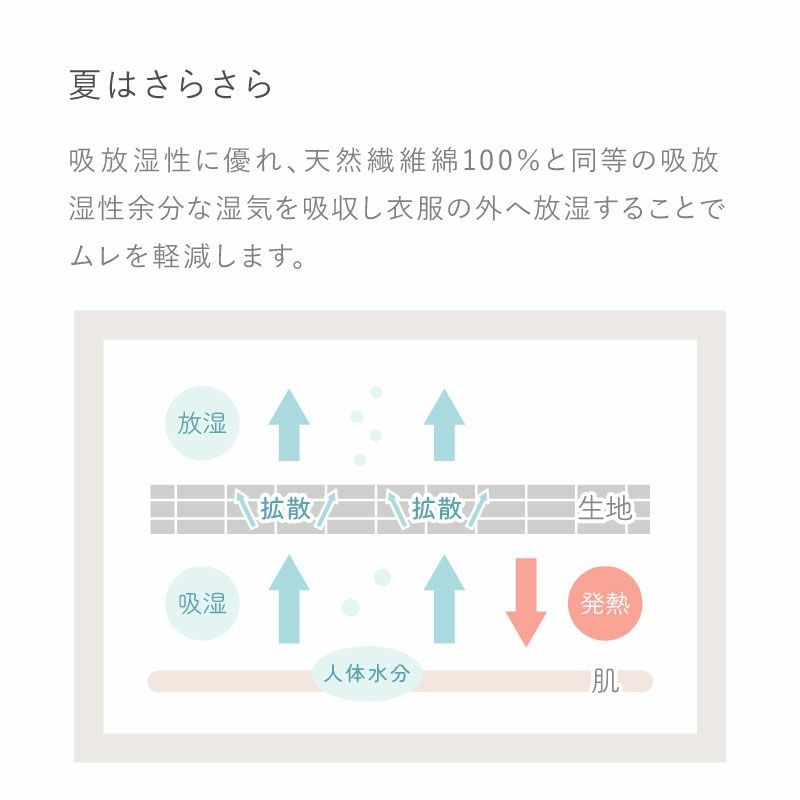 ガーゼのような吸水性・速乾性・通気性を兼ね備えた肌当たり柔らかなインナーです。