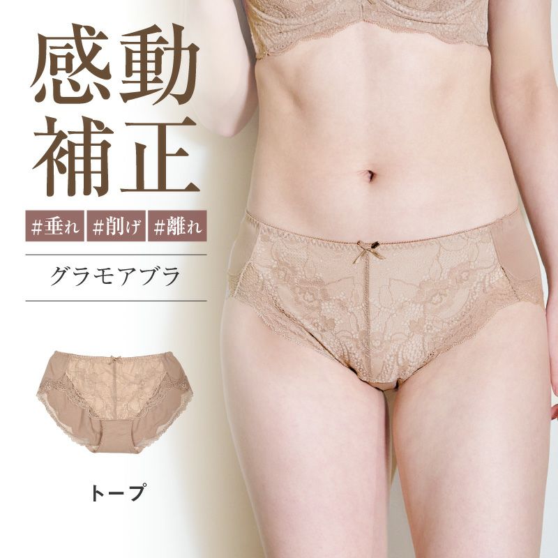 商品名 glamore(グラモア) 自胸に寄り添うバストメイクブラ「グラモアブラ」 レーシーヒップハングショーツ