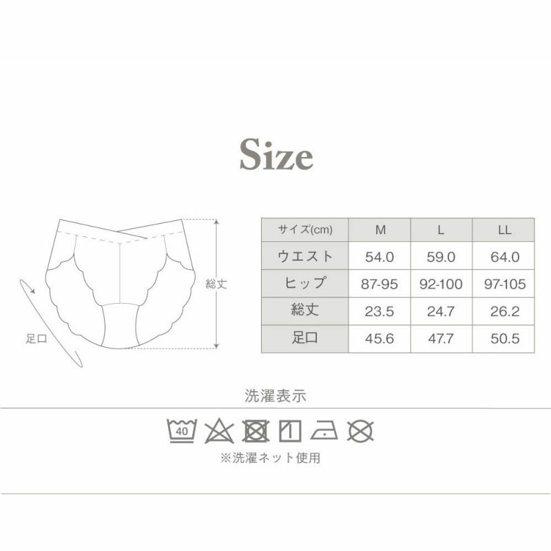 脚口は広めにカットしているので、鼠径部を締め付けず足さばきも◎ お尻側も美しさが広がる総レースは、ぐーんと伸びてしっかりお尻を包み込みます。