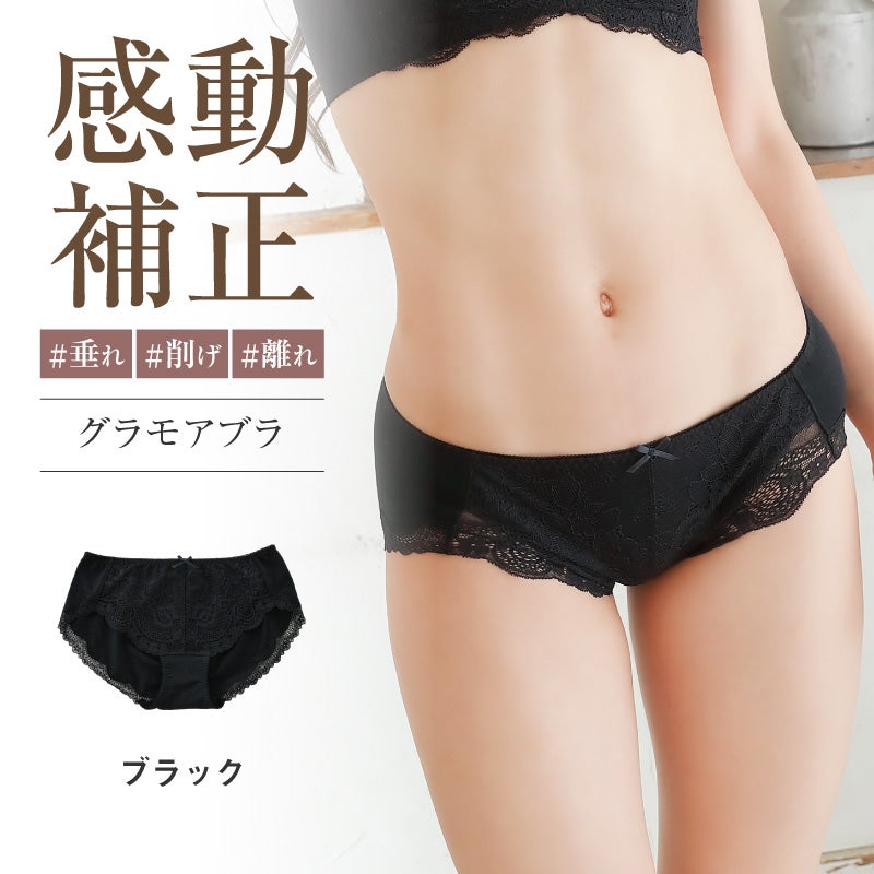 商品名 glamore(グラモア) 自胸に寄り添うバストメイクブラ「グラモアブラ」 レーシーヒップハングショーツ