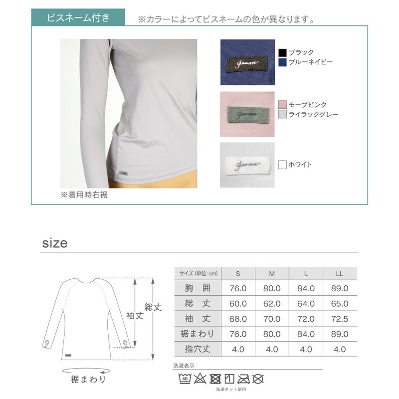 商品説明 高UVカット抜群のラウンドネックインナー(指穴あり)です。